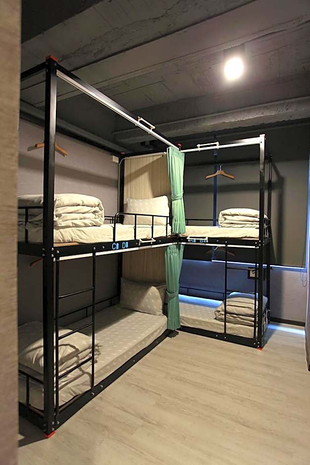 This quadruple room has 4 bunk beds, air conditioning, clothes rack, a safety deposit box and a private bathroom.